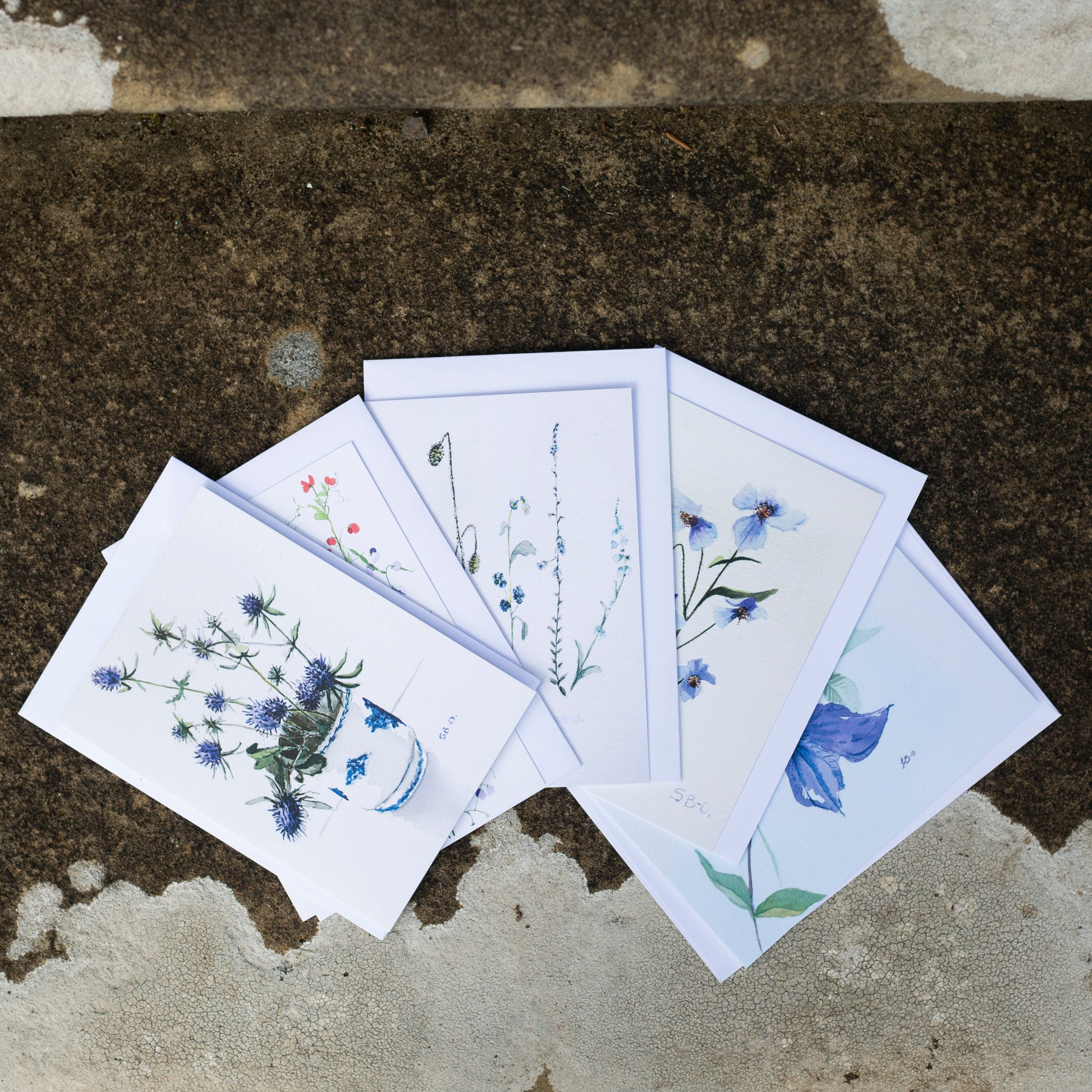 A set of 5 mixed greeting cards with envelopes sized A6. Blank inside to add your own message. Some designs also available as wrapping paper. To order a different set of cards please send a message.