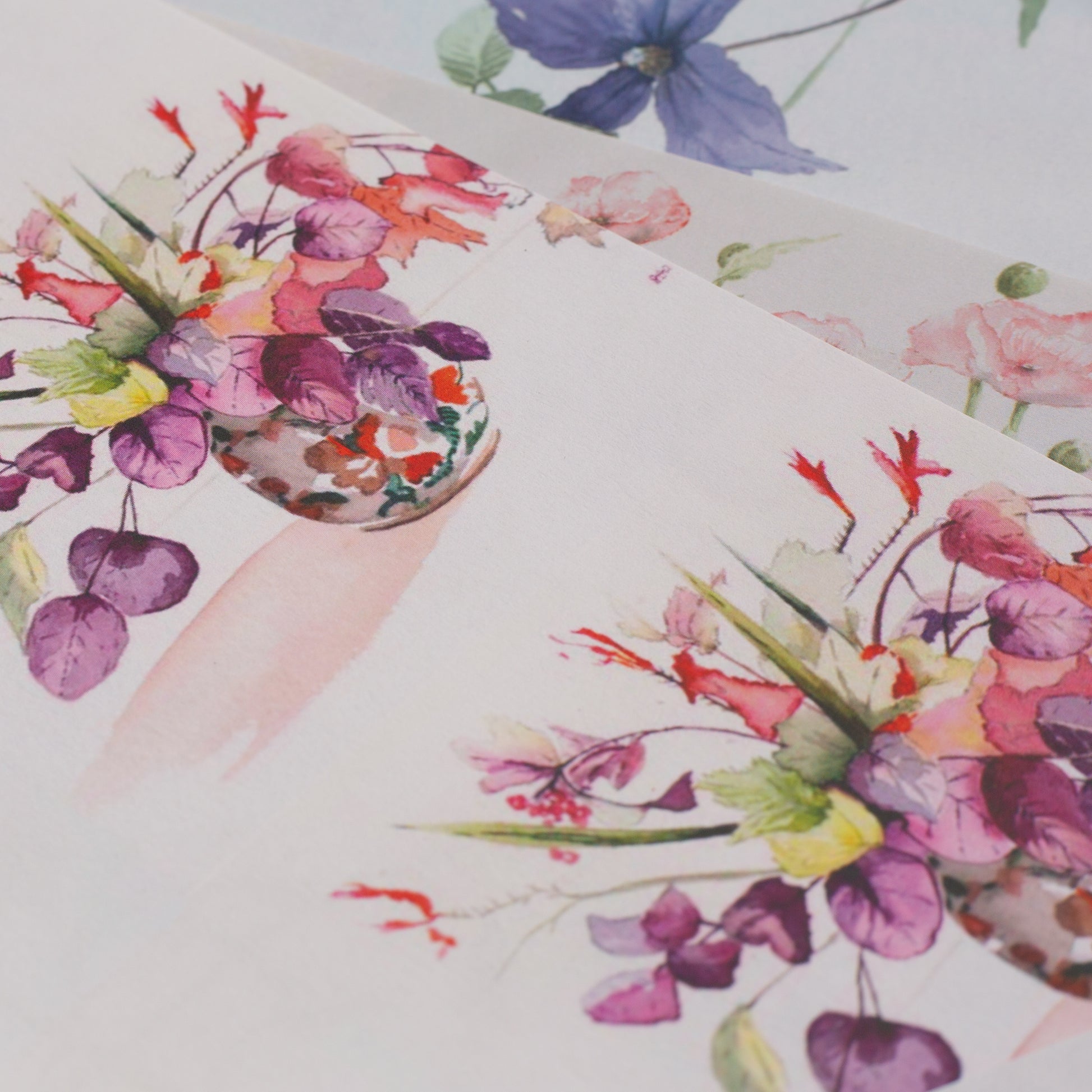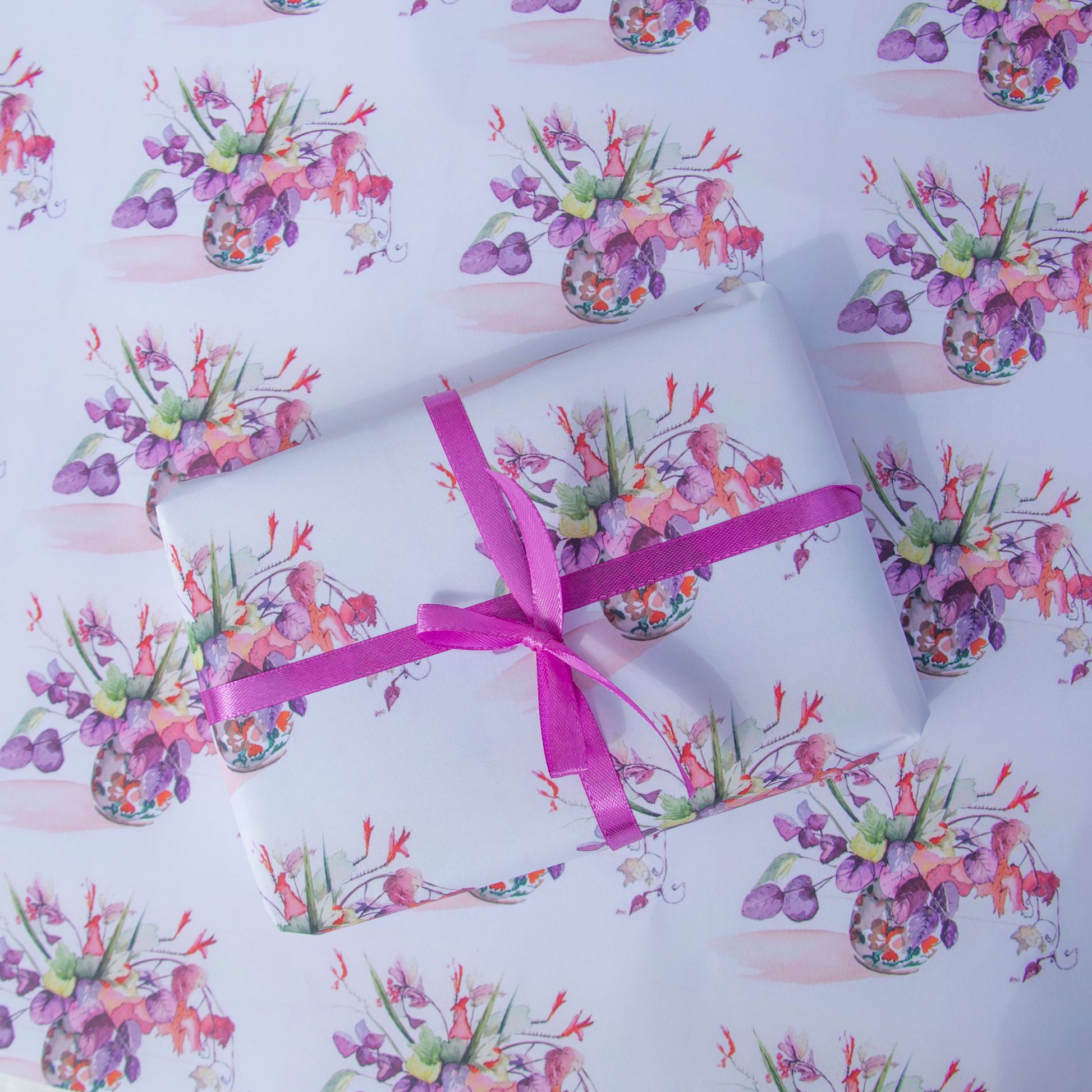 An original gift wrapping paper taken from a watercolour painting by Sarah.