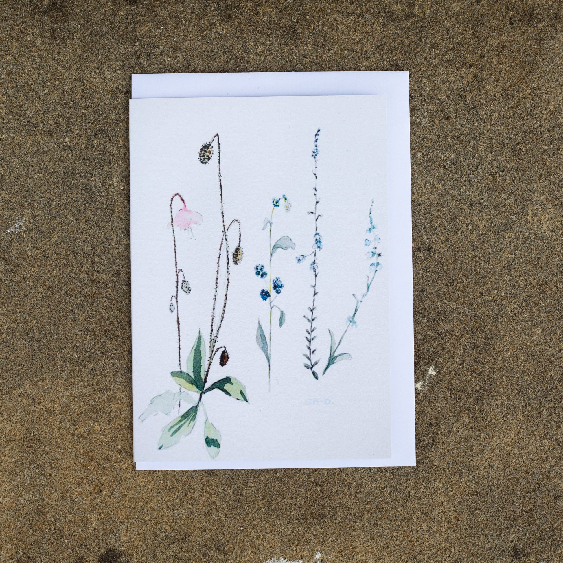 These A6 cards come in a pack of 5 with envelopes. They are blank inside for your own message to be added. The design is taken from an exclusive watercolour painting by Sarah.